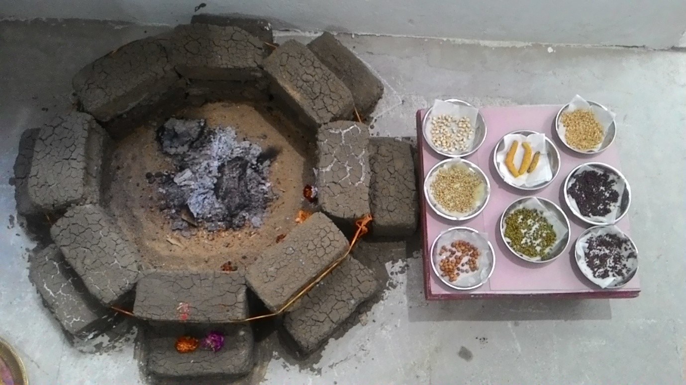 The sacrificial fire altar – Yagya Kund, was prepared using indigenous material, sourced locally.