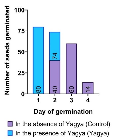 Figure 5. Number of seeds germinated each day in presence and absence of Yagya.
